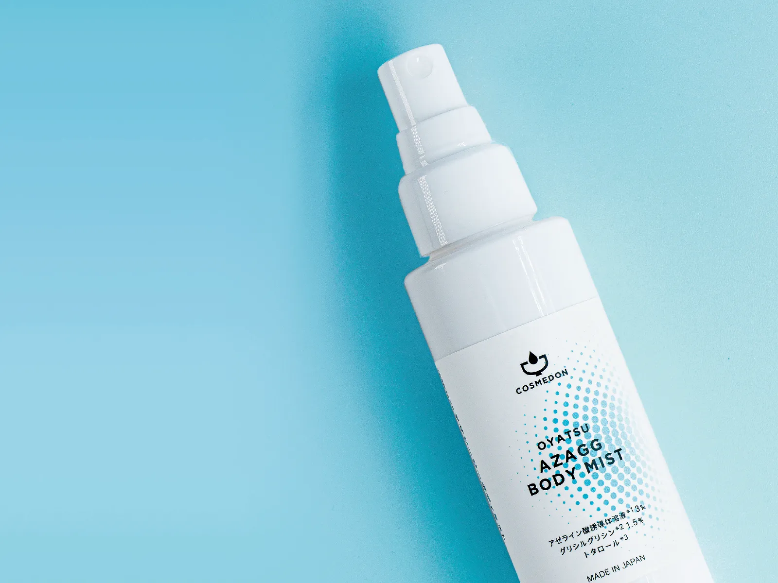 アゼライン酸誘導体溶液配合のアザジージーボディミストの容器がリニューアル! 容量アップ! さらに逆さでも使えるので手が届きにくい背中や腰などにもしっかりミストが届きます♪